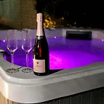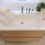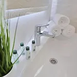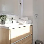 Los cuartos de baño también disponen de una bañera de hidromasaje, una ducha y una lavadora. Las comodidades de los cuartos de baño incluyen secadores de pelo.